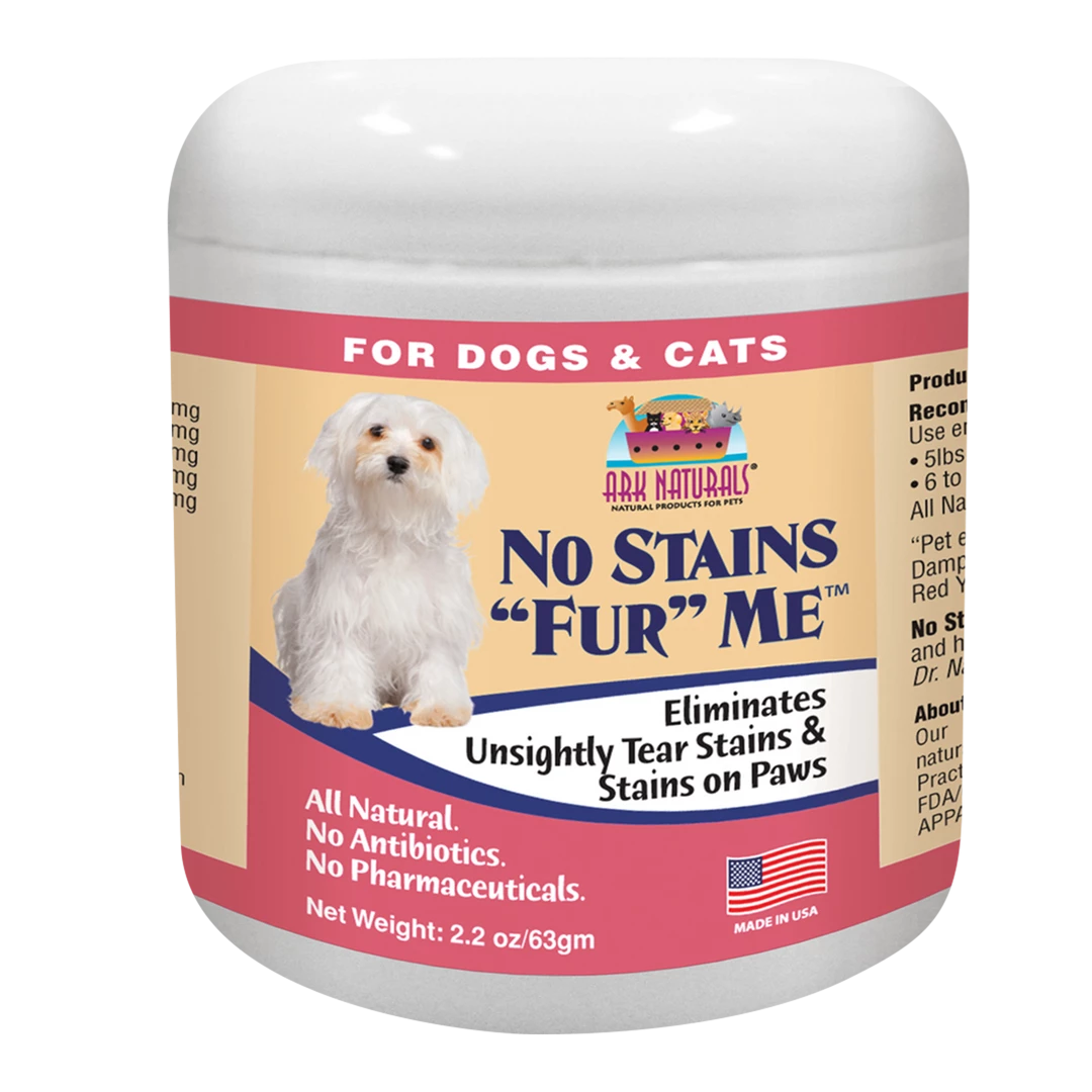 Pet eye stains are caused by pet tearing. Paw stains are caused by excessive licking. Damp pet hair -both eyes and paws- produce the same type of bacteria. The most common is Red Yeast. No Stains βFurβ Meβ’, our natural herbal formula, supports your petsβ immune system and is helpful for bacteria and yeast responsible for the stains.β β Dr. Nancy Scanlan