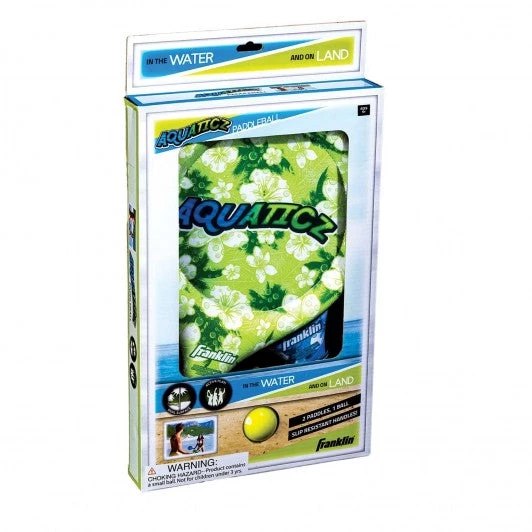 Paddleball has finally entered the water! This water resistant set is great for beach and backyard play. The paddles and balls have been engineered to absorb water and still remain elastic, enhancing the playability at all times. Franklin’s Aquaticz Paddleball is the perfect addition to any backyard, pool, or beach outing.