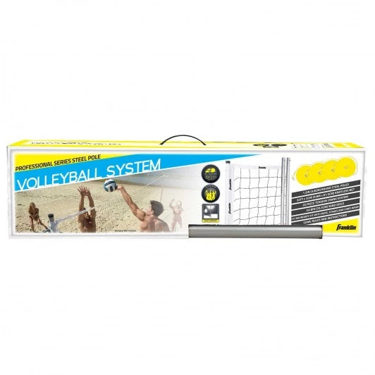 Franklin’s Steel Volleyball Post and Net System are designed for superior stability throughout gameplay and durability in the elements. Using heavy gauge steel ground stakes, heavy-duty steel poles and a molded tension bar adjustment for guy ropes, this net is sure to withstand the most competitive volleyball games. Play in the sand, at the cabin or in your backyard with Franklin’s Volleyball Post and Net System. The set also includes a carrying bag for organized storage when not in use.