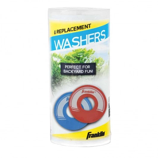 No matter how diligent your search, you’re bound to misplace at least one 3″ washer when playing outdoor games. Don’t sweat it. Franklin’s Replacement Washers give you peace of mind and can be used with the majority of washer-style games. Keep a few tubes with 6 steel core washers handy in your home, at your cabin or wherever you use your favorite outdoor washer game the most.