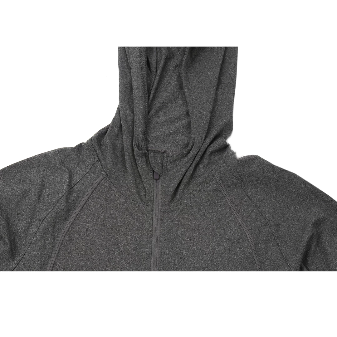 Features: Elastane fabric for permanent elasticity, durability, and crease-resistance, hood, lightweight, thumbholes, pouch.
