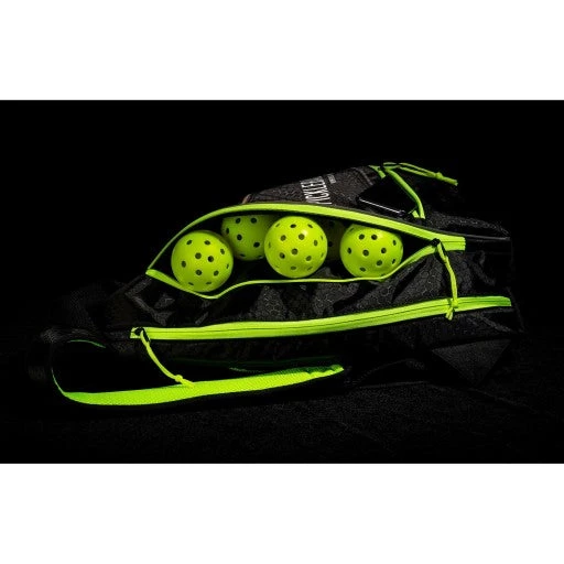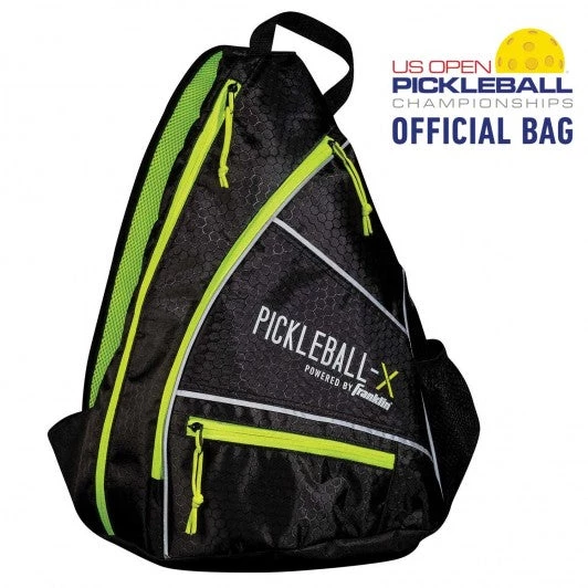 The Pickleball-X® Sling Bag is the official bag of the US Open and has been designed to carry all your pickleball gear and more comfortably and conveniently. The Sling Bag can hold 6 Pickleball-X® paddles securely and 6 X-Performance 40 official pickleballs with room to spare. This bag will help keep your personal devices safe in the designated felt lined soft pocket. Heading to the court on a hot day? The Pickleball-X® sling bag can carry your favorite sports bottle too. When you get to the game, clip the bag onto the court fence with our easy to use fence hook!
