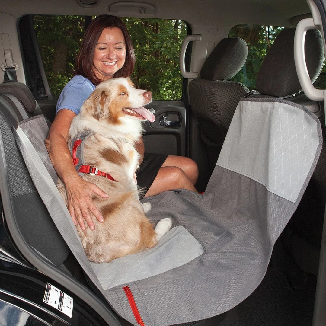 Protect your back seat from mud and dirt with the waterproof and stain resistant Journey HammockTM. With six attachment points, this hammock stays firmly in place between the front and back seats. Not only does it provide a comfortable nest for your dog, but it also reduces the risk of injuries from falling into the foot well. A center zipper can be opened and one side folded down, to allow for a human passenger to share the seat.
