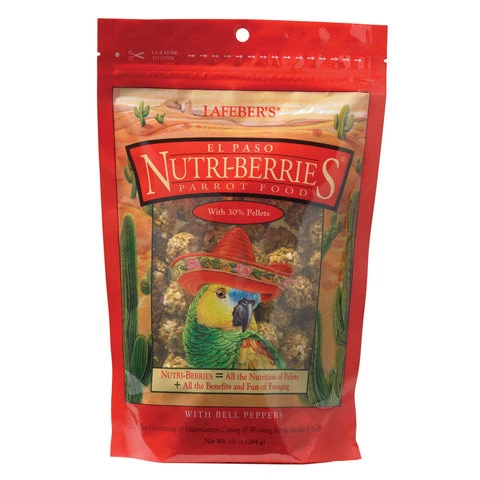 Add a little spice to your bird’s life with El Paso Nutri-Berries! They are made with taste-grabbing ingredients like red and green bell peppers and seasoned with chili powder, cumin, garlic, oregano, and other exotic spices that your bird is sure to go wild over! El Paso Nutri-Berries are a nutritionally complete food designed to cater to your bird’s foraging instincts and excite his taste buds. We believe your bird’s food can be both exciting and nutritious. Your feathered friend will love holding, pulling, and tearing at each berrie.