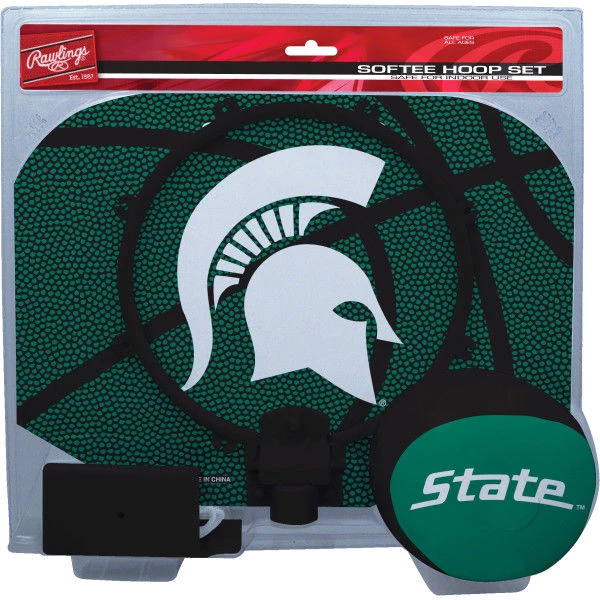 Softee ball and hoop set features a 12 in x 9 in full color backboard. It’s easy to assemble and mount to any door.