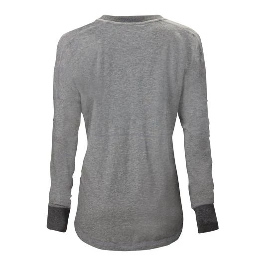 Marrying comfort and performance, this lightweight “boyfriend” fit Womens pullover top features a stretch fabric, deep cuffs, and a scalloped hem, all engineered to maximum movement during practice and warm up. Available in one of 4 great heathered colors or solid white.