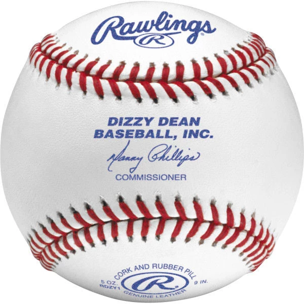 This baseball has Rawlings superstitch raised seams with full grain leather cover and composite cork and rubber center which makes it perfect for Dizzy Dean League Baseball.
