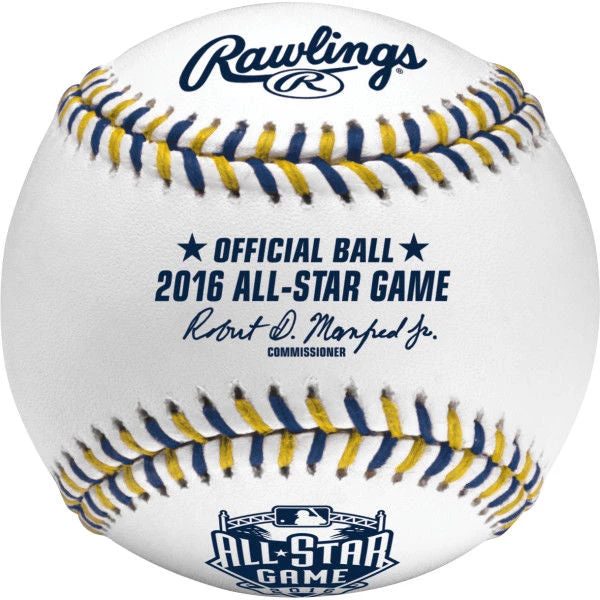 This is the official game ball used in the 2016 All-Star game at Petco Park in San Diego, California. This will be the 3rd time that the Midsummer Classic will be held in San Diego. This baseball bears the commemorative 2016 All-Star logo.