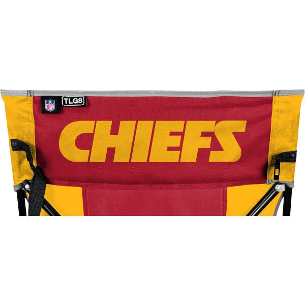 This NFL tailgate chair features your favorite team logo in a dual color pattern and word mark. The “no sag” comfort chair features 1 mesh cup holder as well as a click and carry buckle and shoulder strap for easy transport.