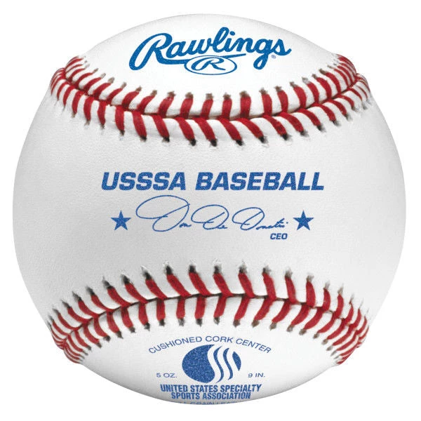 This USSSA baseball is an official baseball of the USSSA. These baseballs have Rawlings exclusive EIT (Extra Innings Technology). EIT baseballs contain a patented thin layer of polymer just under the cover which resists the damaging effects of moisture on durability and performance and plays a key role in maintaining the ball’s firmness. This USSSA baseball has a full grain leather cover for added durability, Rawlings raised seams for a better grip, a cushioned cork center and carries the official USSSA stamp.