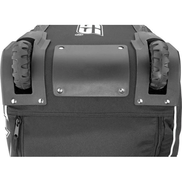 Β This equipment bag holds up to 6 bats and has a extra large main compartment which makes it the perfect bag for a catcher. The “Workhorse” also features Unstoppable B3 Monster Wheels to make pulling the bag easy and a Velcro closed strap for carrying. Other features include: a leg guard, catchers mask, and chest protector compartment.
