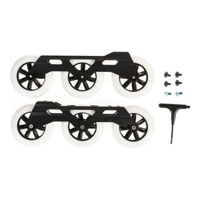 The perfect upgrade for urban skaters. The 3WD Urban Pack includes everything that is needed to convert Metroblade, Twister Edge and RB urban skates to 3 wheel drive. Its cutting edge components make it faster with less vibration, more maneuverability and efficiency. Included in the kit: 255mm extruded aluminum frames with 165mm frame mounting holes, 6 Hydrogen 110mm/85a wheels, 12 Twincam ILQ-9 Classic Plus bearings, (6) 8mm aluminum bearing spacers, 6 racing axles, 4 boot screws and a 4mm Allen Key. 3WD frames are for skaters looking for a new experience with bigger wheels. Less vibration, longer wear, a smoother ride, increased maneuverability and more efficiency are what to expect when skating them.