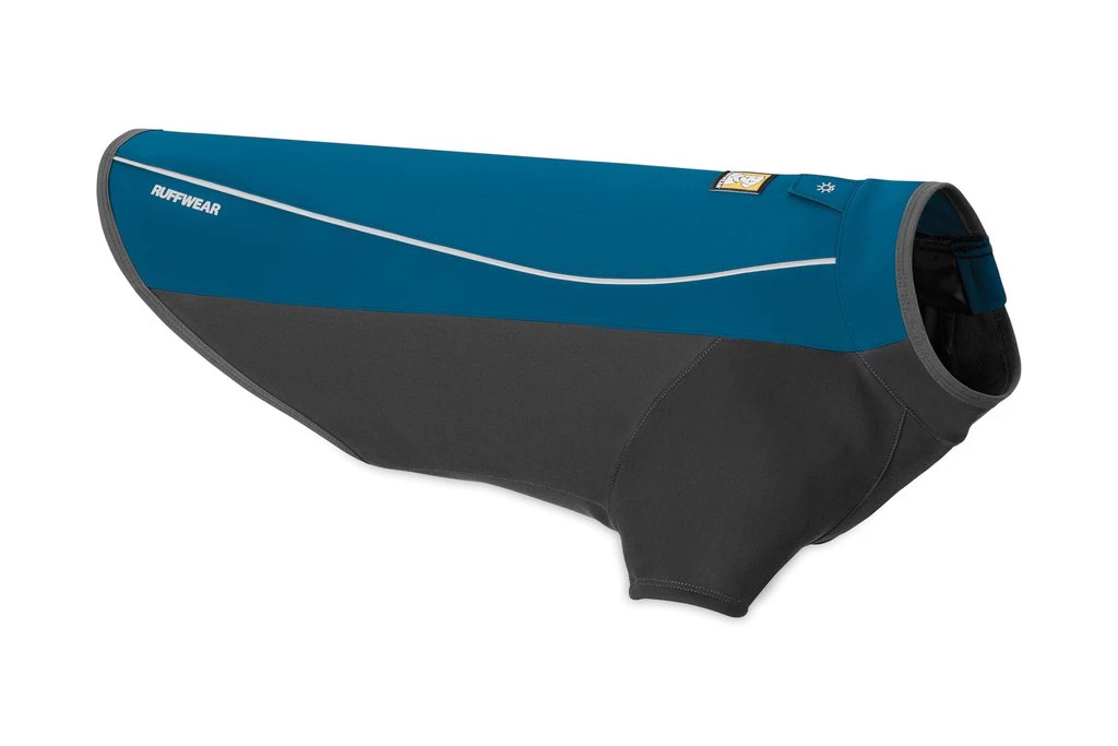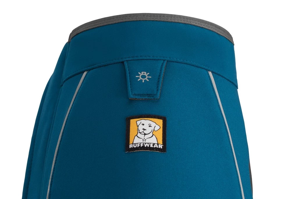 The Ruffwear Cloud Chaser™ extends activities during inclement weather, protecting against rain, snow, wind, and cold. The jacket’s upper panel is built with waterproof, windproof, breathable softshell fabric. The fleece-lined lower panel sheds water, snow, and dirt while holding in warmth. Zippered closure provides a performance fit while stretch technical fabric offers a full range of movement. Reflective trim enhances low-light visibility.