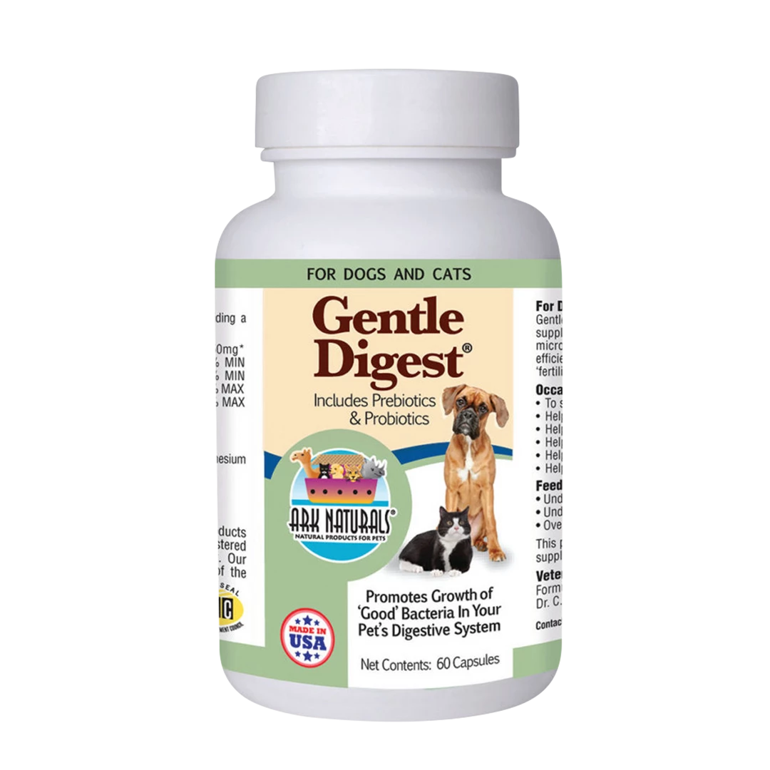 Gentle Digest™ contains prebiotics and probiotics. Probiotics provides a source of beneficial intestinal bacteria and also helps to encourage their growth. Prebiotics help stimulate the growth and/or activity of probiotics. Helps to support a healthy immune system and support intestinal balance. Helpful for periodic issues with gas, flatulence, smelly and irregular stools. Helps to support digestion and absorption of critical nutrients and senior pets and pets under stress. Made in the USA.