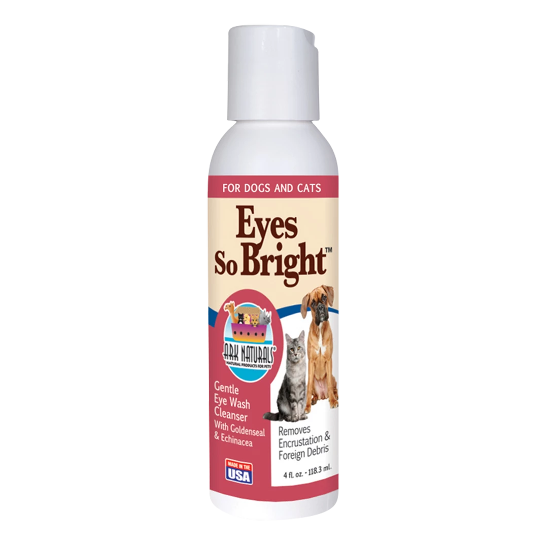 Gentle eye wash formulated to soothe and maintain healthy eyes. Eyes so Bright™ is great for removing foreign debris and encrustation that build up in the mucous membranes of your pet’s eyes. Active ingredients include aloe, goldenseal, and echinacea. Made in the USA.