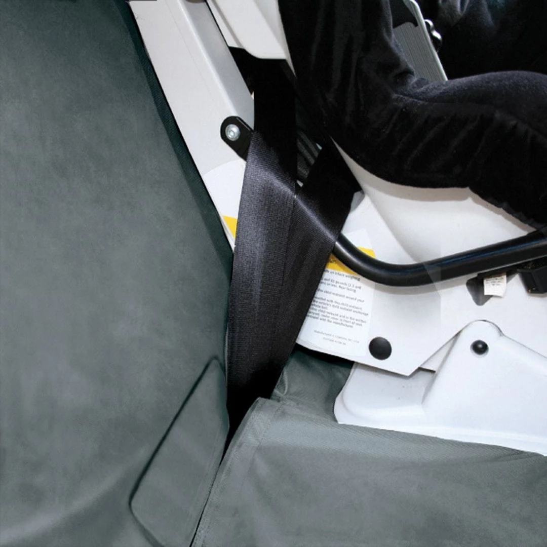 Rigid plastic tubes attached to the underside of the cover can be tucked into the crevice where the seat back meets the base, to help secure them to the seat