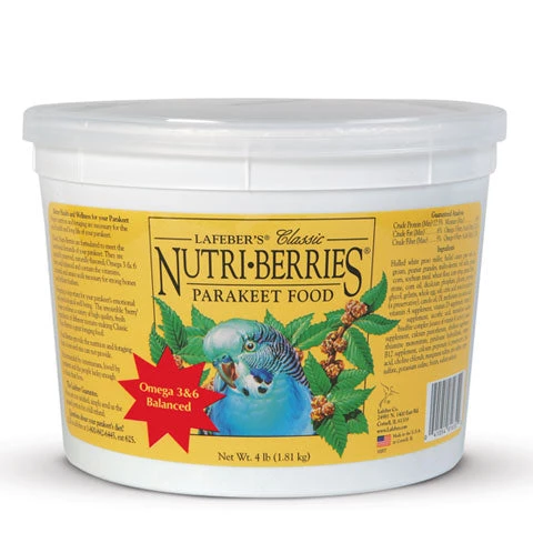 Classic Nutri-Berries are nutritionally balanced like pellets, just not ground up. Like pellets, Nutri-Berries contain seeds and grains. In pellets, however, they are ground into a fine powder and then formed into a pellet. Most of the seeds and grains in Nutri-Berries are kept whole because Dr. Lafeber discovered how to nutritionally balance them without grinding. We naturally preserve our foods and like all our foods, Parakeet Nutri-Berries are free of artificial colors, so you can feel good about offering them to your bird, either as a complete meal or as a healthy treat.