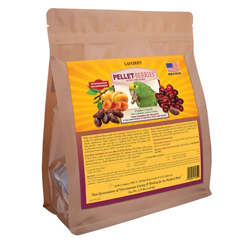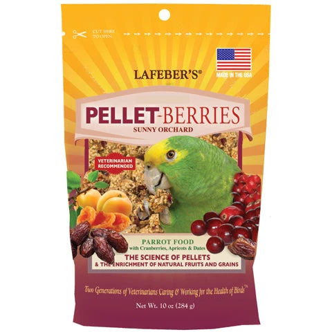 Pellet-Berries have a look, taste, and feel that appeal to birds. The round, berry shape offers a mix of whole cranberries, dates, apricots, and natural grains along with a heavy serving of nutritionally balanced pellets so your bird can have enriching tastes and solid nutrition, too. These special berries are sized for your parrot to hold and pull apart. Your bird will savor the satisfaction of using his beak and tongue to pick apart each berrie — a more exciting way to good nutrition than simply crumbling up a regular pellet.