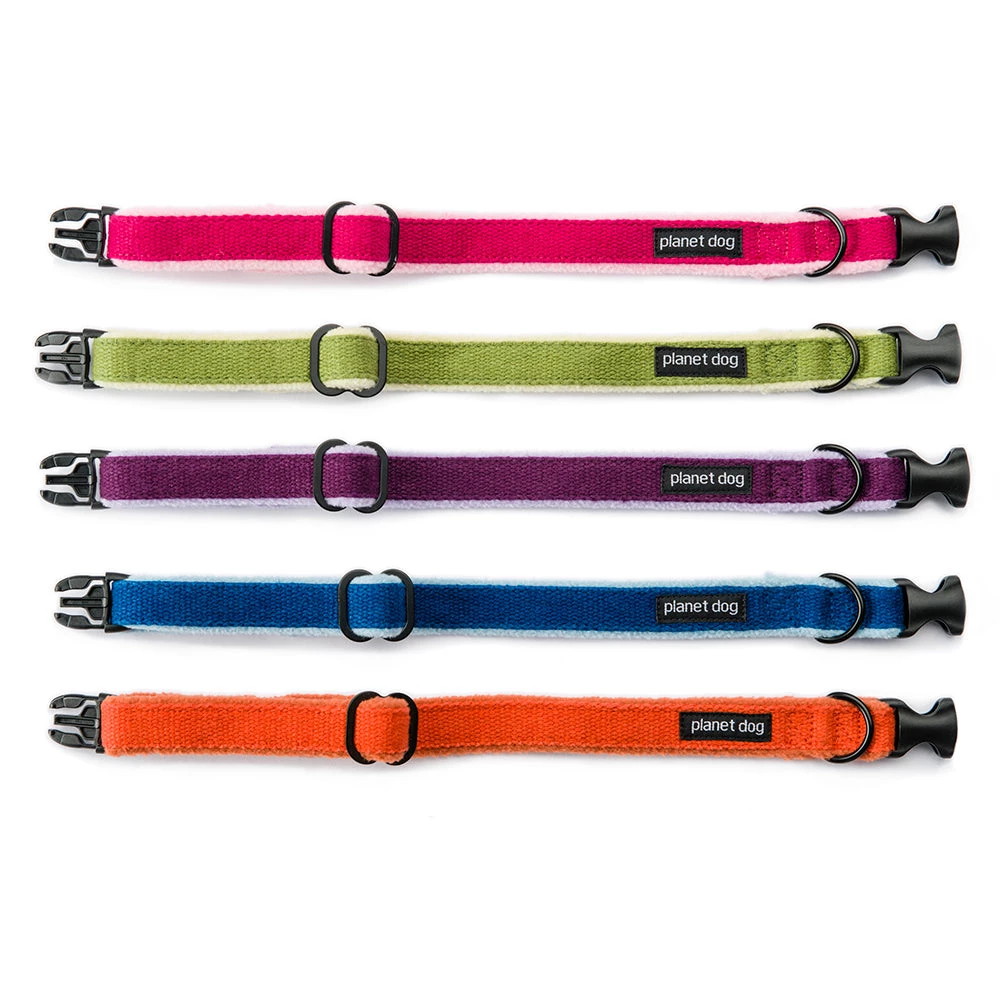 The Cozy Hemp Collar softens with age like a favorite pair of jeans – it’s what you would wear if you were a dog! Machine wash and air dry for a long life. The Small measures .5″ wide and fits 9-13″ necks. Small collars are not fleece-lined. The Medium measures 1″ wide and fits 12-19″ neck, and the Large measures 1″ wide and fits 18-28″ necks. Medium and Large collars feature a fleece lining. Available in apple green, blue, orange, pink, and purple. Imported from China. 100% GUARANTEED. Any time. Every time.